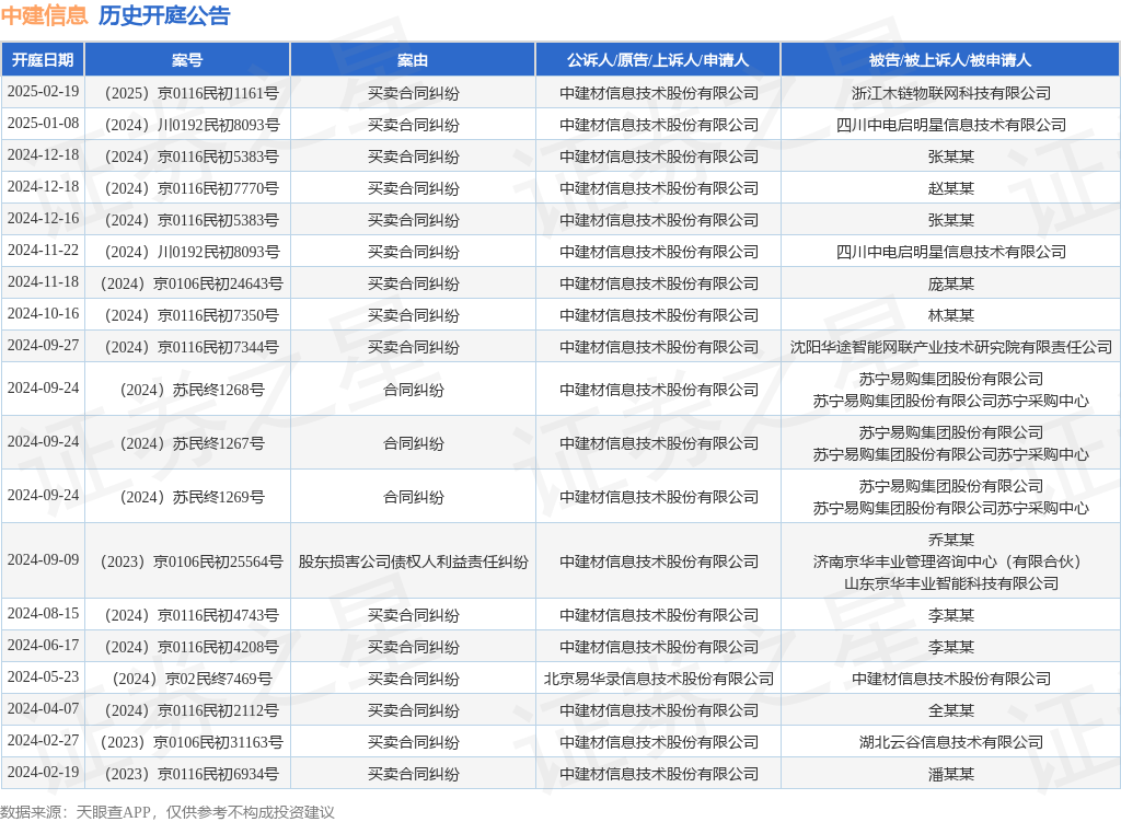 本站消息,根据天眼查APP显示,近日公布了一则中建材信息技术股份有限公司作为原告/上诉人的开庭公告,详细内容如下: